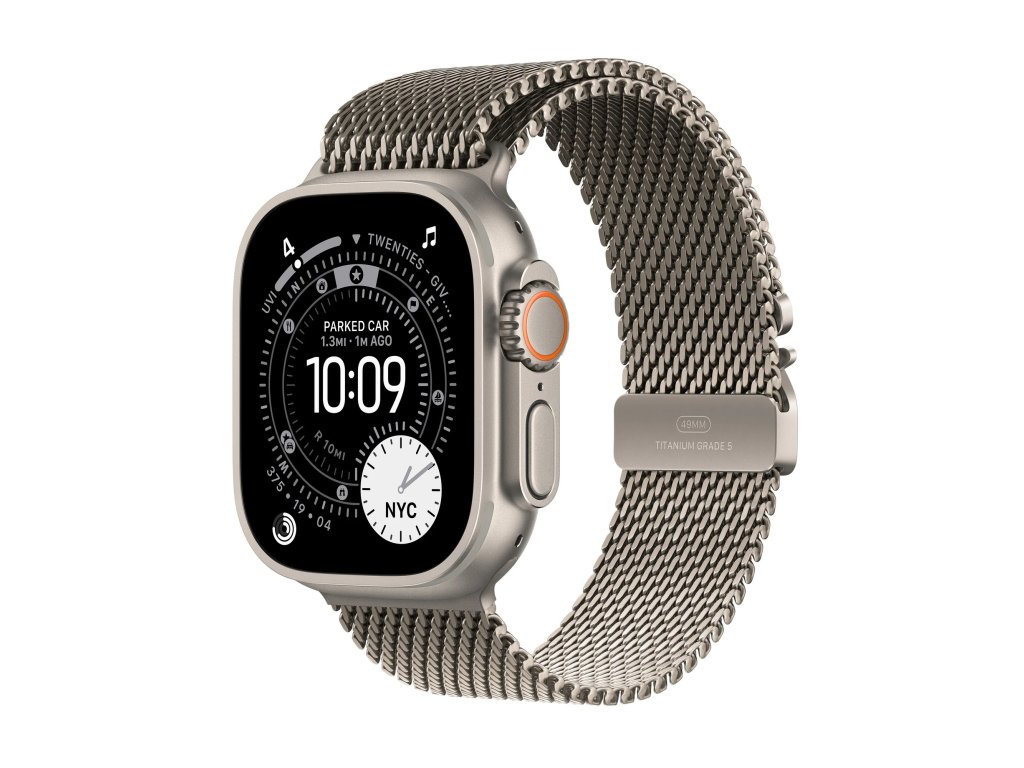 Apple Watch Ultra 3 Milanese Loop přírodně titanové S * pro zápěstí s obvodem 130–210 mm * korunka Digital Crown s haptickou odezvou * 2x reproduktor/3x mikrofon * MIL-STD 810H Operační systém: watchOS Displej: stále zapnutý LTPO3 OLED Retina, 422×514 pixelů, 1245mm2, 326 ppi, 1/3000 nitů, obnovovací frekvence 1 Hz, noční režim Čip: * S10 s 64bitovým dvoujádrovým procesorem * 4jádrový Neural Engine * 64 GB Připojení: * dvoufrekvenční GPS L1 a L5 (GPS, GLONASS, Galileo, QZSS a BeiDou) * LTE a UMTS * Wi-Fi 4 (802.11n) * podpora 2,4GHz a 5GHz Wi-Fi sítí * Bluetooth 5.3 * NFC: Apple Pay, GymKit Snímače: * elektrický snímač srdeční činnosti * třetí generace optického snímače srdeční činnosti * saturace kyslíkem * teploty * hloubkoměr * teploty vody * kompas * stále aktivní výškoměr * akcelerometr snímající vysoké přetížení * gyroskop s vysokým dynamickým rozsahem * okolního osvětlení Voděodolnost: do 100 m (pro plavání, šnorchlování, přístrojové potápění - vyhovuje požadavkům normy EN13319 pro rekreační potápění do 40 m, a vysokorychlostní vodní sporty) Funkce: * aplikace Saturace kyslíkem * aplikace EKG * aplikace Sledování cyklu se zpětným odhadem doby ovulace * aplikace Srdeční tep * oznámení o vysoké a nízké tepové frekvenci * oznámení o nepravidelném srdečním rytmu * aplikace Léky * aplikace Všímavost se zaznamenáváním stavu mysli * aplikace Hluk * aplikace Spánek se sledováním fází spánku * spánkové skóre * upozorňování na spánkovou apnoi * oznámení o hypertenzi * tíseň SOS * mezinárodní tísňové volání * siréna * svítilna * detekce autonehody * detekce pádu * bod posledního místa s dostupností tísňového volání * monitorování hluku Kompatibilita: iPhone 11 a novější, včetně iPhonu SE (2. generace a novější) s iOS 26 nebo novějším Napájení: vestavěná dobíjecí lithium-iontová, podpora rychlonabíjení, až 42 hodin běžného používání Materiál pouzdra: titan třídy 5 Rozměry: 49x44x12mm Hmotnost: 61,6g Obsah balení: * Apple Watch Ultra 3 * řemínek * magnetická rychlonabíječka Apple Watch s USB-C kabelem (1m)Doplňkové parametry