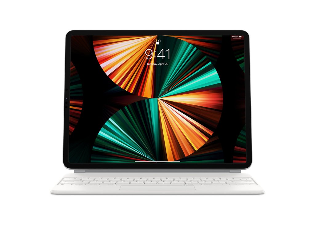 Magic Keyboard k 12,9palcovému iPadu Pro (5. generace) – slovenský – bílý Magic Keyboard je dokonalý doplněk 12,9palcového iPadu Pro. Výborně se na něm píše, má trackpad s novými možnostmi ovládání iPadOS a taky USB-C port na nabíjení iPadu. Chrání ho zepředu i zezadu. iPad Pro se k plovoucí konzolové konstrukci Magic Keyboardu přichycuje magneticky, takže ho hladce nastavíš přesně do takového úhlu, ve kterém se ti na něj dívá nejlíp. *Pohodlné podsvícené klávesy a nůžkový mechanismus s 1mm zdvihem pro tiché psaní s příjemnou odezvou. *Navržený pro Multi-Touch gesta a kurzor v iPadOS. *Hladce si nastavíš přesně takový úhel, ve kterém se ti na obrazovku dívá nejlíp. *Má port USB-C na nabíjení iPadu Pro, takže si k volnému portu iPadu můžeš připojit další doplňky. *V zavřeném stavu chrání iPad Pro z obou stran. Požadavky na systém: 12,9palcový iPad Pro (3., 4. nebo 5. generace) s iPadOS 14.5 nebo novějším. Kompatibilita: Modely iPadu *12,9palcový iPad Pro (5. generace) *12,9palcový iPad Pro (4. generace) *12,9palcový iPad Pro (3. generace)Doplňkové parametry