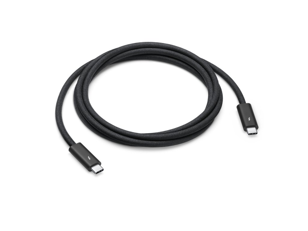 Apple Thunderbolt 4 (USB-C) Pro (1,8m) kabel Tento 1,8metrový kabel s černým opletením, které brání zamotání, podporuje přenosovou rychlost Thunderboltu 3, Thunderboltu 4 a USB 4 až 40 Gb/s, přenosovou rychlost USB 3 až 10 Gb/s, výstup videa přes DisplayPort (HBR3) a napájení příkonem až 100 W. K Macu s portem Thunderbolt 3 nebo 4 (USB-C) tímhto kabelem lze připojit Thunderbolt (USB-C) a USB monitory a zařízení jako Studio Display, Pro Display XDR, doky nebo pevné disky. Tímhto kabelem lze také připojit iPhone 15 Pro k Macu. Připojení: Thunderbolt 4 (USB-C) Délka kabelu: 1,8m Barva: černáDoplňkové parametry