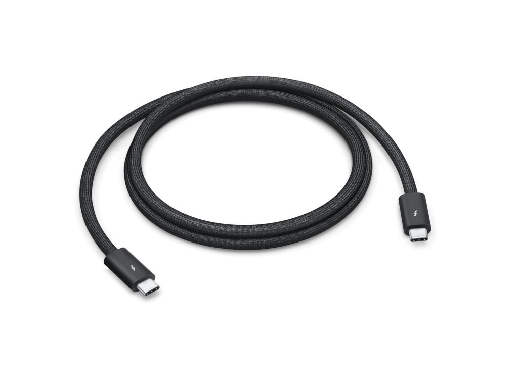 Apple Thunderbolt 5 (USB-C) Pro kabel (1m) 1metrový kabel s černým opletením, které brání zamotání, podporuje přenosovou rychlost Thunderboltu 5 až 120 Gb/s, Thunderboltu 3, Thunderboltu 4 a USB 4 až 80 Gb/s, přenosovou rychlost USB 3 až 10 Gb/s, výstup videa přes DisplayPort 2.1 a napájení příkonem až 240 W. Rozhraní: USB-C Barva: černáDoplňkové parametry