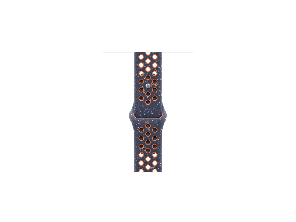 41mm Blue Flame sportovní řemínek Nike – S/M Tenhle sportovní řemínek Nike má vylisované otvory pro větší vzdušnost, je odolný, pevný a přitom krásně poddajný. Obsahuje barevné vločky vytvářející náhodné vzory, takže každý řemínek je originál. Jeho hladký, hutný materiál se elegantně ovine kolem zápěstí a příjemně sedí. A nově se zapíná na hliníkový kolíček s matným povrchem. Řemínek obsahuje minimálně 32 % recyklovaného fluoroelastomeru, přičemž obsah recyklovaného fluoroelastomeru v každé vločce je minimálně 66 %.Doplňkové parametry