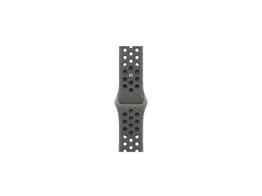 41mm Cargo khaki sportovní řemínek Nike – M/L Tenhle sportovní řemínek Nike má vylisované otvory pro větší vzdušnost, je odolný, pevný a přitom krásně poddajný. Obsahuje barevné vločky vytvářející náhodné vzory, takže každý řemínek je originál. Jeho hladký, hutný materiál se elegantně ovine kolem zápěstí a příjemně sedí. A nově se zapíná na hliníkový kolíček s matným povrchem. Řemínek obsahuje minimálně 32 % recyklovaného fluoroelastomeru, přičemž obsah recyklovaného fluoroelastomeru v každé vločce je minimálně 66 %.Doplňkové parametry