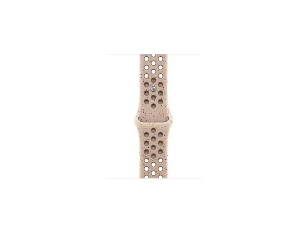 41mm Desert Stone sportovní řemínek Nike – S/M Tenhle sportovní řemínek Nike má vylisované otvory pro větší vzdušnost, je odolný, pevný a přitom krásně poddajný. Obsahuje barevné vločky vytvářející náhodné vzory, takže každý řemínek je originál. Jeho hladký, hutný materiál se elegantně ovine kolem zápěstí a příjemně sedí. A nově se zapíná na hliníkový kolíček s matným povrchem. Řemínek obsahuje minimálně 32 % recyklovaného fluoroelastomeru, přičemž obsah recyklovaného fluoroelastomeru v každé vločce je minimálně 66 %.Doplňkové parametry