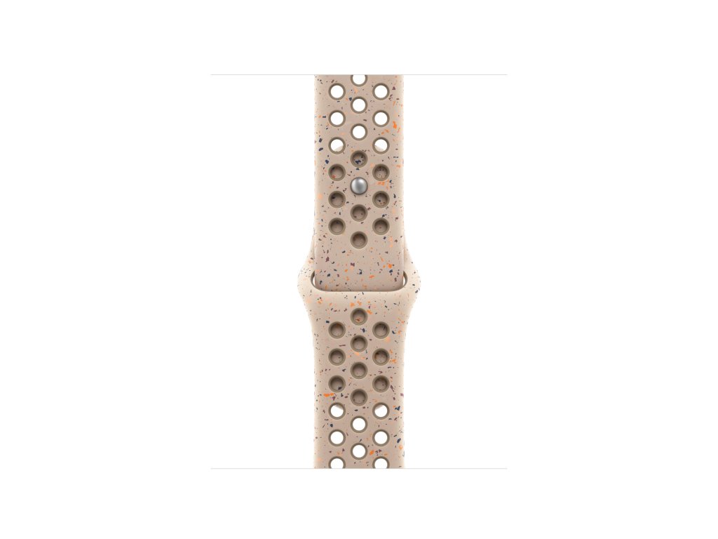 Apple 42mm sportovní řemínek Nike – M/L Tenhle sportovní řemínek Nike má vylisované otvory pro větší vzdušnost, je odolný, pevný a přitom krásně poddajný. Obsahuje barevné vločky vytvářející náhodné vzory, takže každý řemínek je originál. Jeho hladký, hutný materiál se elegantně ovine kolem zápěstí a příjemně sedí. A nově se zapíná na hliníkový kolíček s matným povrchem. Řemínek obsahuje minimálně 30 % recyklovaného fluoroelastomeru, přičemž obsah recyklovaného fluoroelastomeru v každé vločce je minimálně 66 %. V krabici Sportovní řemínek Apple Watch Nike Technické specifikace Materiál: Hliník, Minimálně 30 % recyklovaného fluoroelastomeru Barva: Desert Stone Nike Velikost řemínku: 150 - 200 mm Kompatibilita - Modely Apple Watch * 38 mm * 40 mm * 41 mm * 42 mmDoplňkové parametry