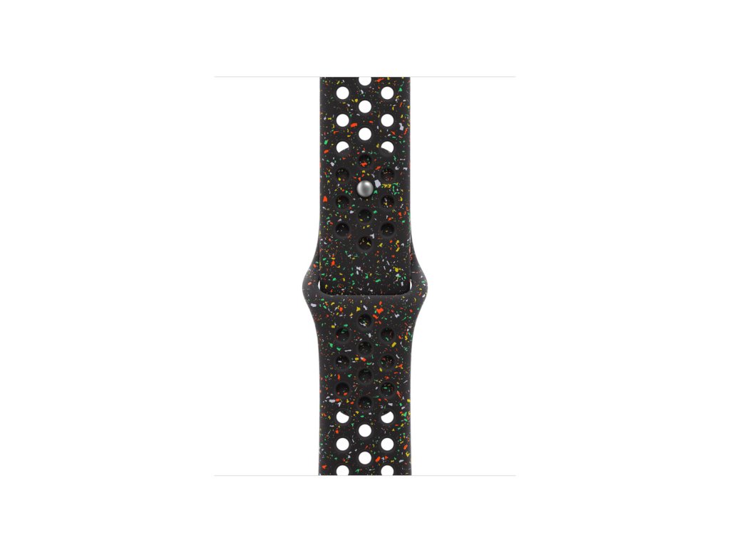 42mm Midnight Black sportovní řemínek Nike Tenhle sportovní řemínek Nike má vylisované otvory pro větší vzdušnost, je odolný, pevný a přitom překvapivě poddajný. Obsahuje barevné vločky, které tvoří náhodné vzory, takže každý řemínek je originál. Jeho hladký, hutný materiál se elegantně ovine kolem zápěstí a příjemně sedí. A zapíná se na hliníkový kolíček s matným povrchem, do kterého je pečlivě vygravírované logo Nike Run. *Materiál: Hliník, Fluoroelastomer Kompatibilita Modely Apple Watch *38 mm *40 mm *41 mm *42 mm S/M: Na zápěstí s obvodem 130–180 mm.Doplňkové parametry