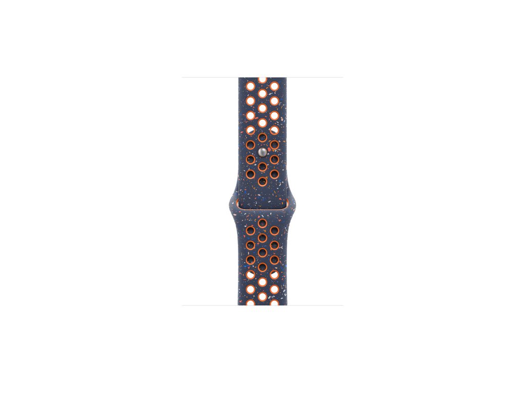 45mm Blue Flame sportovní řemínek Nike – M/L Tenhle sportovní řemínek Nike má vylisované otvory pro větší vzdušnost, je odolný, pevný a přitom krásně poddajný. Obsahuje barevné vločky vytvářející náhodné vzory, takže každý řemínek je originál. Jeho hladký, hutný materiál se elegantně ovine kolem zápěstí a příjemně sedí. A nově se zapíná na hliníkový kolíček s matným povrchem. Řemínek obsahuje minimálně 32 % recyklovaného fluoroelastomeru, přičemž obsah recyklovaného fluoroelastomeru v každé vločce je minimálně 66 %.Doplňkové parametry
