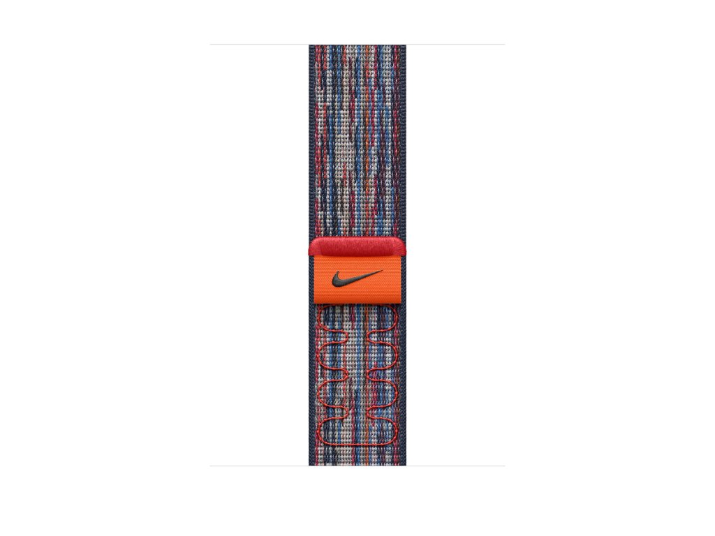 Apple 46mm provlékací sportovní řemínek Nike Nově navržený provlékací sportovní řemínek Nike s výrazným vzorem je měkký, prodyšný, lehký a při jeho výrobě se využívá přebytkové vlákno z předchozích sezón. Na rychlé dotažení za běhu má provlékací zapínání s tkaným poutkem, které je zdobené logem Nike. Hustě tkaná oka na vnitřní straně dvouvrstvé nylonové tkaniny jemně přiléhají k pokožce a nechávají ji dýchat. Provlékací sportovní řemínek Nike obsahuje minimálně 68 % přebytkového vlákna z předchozích sezón, čímž jsme ušetřili přes 3 tuny nového vlákna. V krabici Provlékací sportovní řemínek Nike k Apple Watch Technické specifikace Materiál: 68 % přebytkového tkaného nylonu z předchozích sezón Barva: modro-červená (Blue/Red Nike) Velikost řemínku: 145–220 mm Kompatibilita - Modely Apple Watch * 44 mm * 45 mm * 46 mm * 49 mmDoplňkové parametry