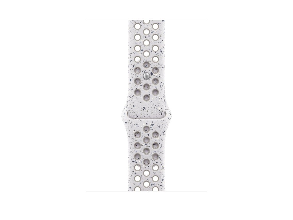 46mm Veiled Grey sportovní řemínek Nike Tenhle sportovní řemínek Nike má vylisované otvory pro větší vzdušnost, je odolný, pevný a přitom překvapivě poddajný. Obsahuje barevné vločky, které tvoří náhodné vzory, takže každý řemínek je originál. Jeho hladký, hutný materiál se elegantně ovine kolem zápěstí a příjemně sedí. A zapíná se na hliníkový kolíček s matným povrchem, do kterého je pečlivě vygravírované logo Nike Run. *Materiál: Hliník, Fluoroelastomer Kompatibilita Modely Apple Watch *44 mm *45 mm *46 mm *49 mm S/M: Na zápěstí s obvodem 140–190 mm.Doplňkové parametry