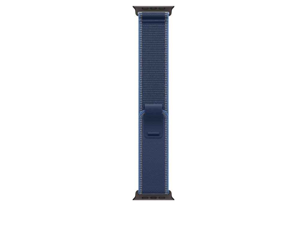 49mm modrý / jasně modrý Trailový tah – provedení z černého titanu Ultratenký, lehký a strečový řemínek vyrobený z nylonové tkaniny, která je elastická a pohodlná na nošení. Má praktické zapínací poutko na rychlé úpravy dotažení v poklusu a nově i reflexní vlákna po okrajích. *Materiál: 90% podíl recyklovaného titanu, 100% recyklovaný polyester, 100% recyklovaný elastan, 60% recyklovaný nylon Kompatibilita Modely Apple Watch *44 mm *45 mm *46 mm *49 mm S/M: Na zápěstí s obvodem 130–180 mm.Doplňkové parametry