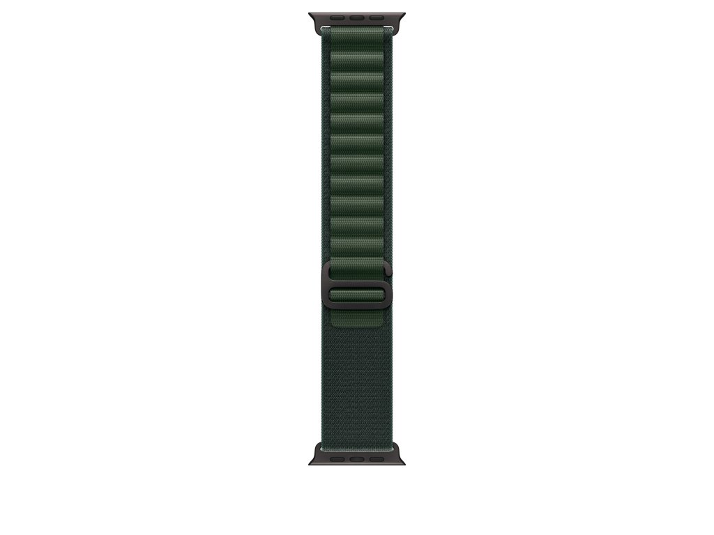 Apple 49mm Alpský tah – malý – provedení z černého titanu Houževnatý Alpský tah je vyrobený ze dvou textilních vrstev tkaných jako jeden souvislý celek bez jakýchkoli stehů. Svrchní poutka jsou zpevněná vysokopevnostní přízí a titanová spona ve tvaru písmene G do nich snadno vklouzne a spolehlivě drží. Tenhle řemínek je uhlíkově neutrální. 43 % z váhy Alpského tahu tvoří recyklované materiály, 100 % elektřiny použité při výrobě pochází z čistých zdrojů a 50 % nebo víc ze všech uhlíkově neutrálních produktů Apple nepřepravujeme letadly. V krabici Alpský tah k Apple Watch Technické specifikace Materiál: Titan, 100% recyklovaný polyester, 100% recyklovaný elastan Barva: tmavě zelená (Dark Green Alpine) Barva pouzdra Apple Watch: černá (Black) Velikost řemínku: 130-160 mm Kompatibilita - Modely Apple Watch * 44 mm * 45 mm * 46 mm * 49 mmDoplňkové parametry