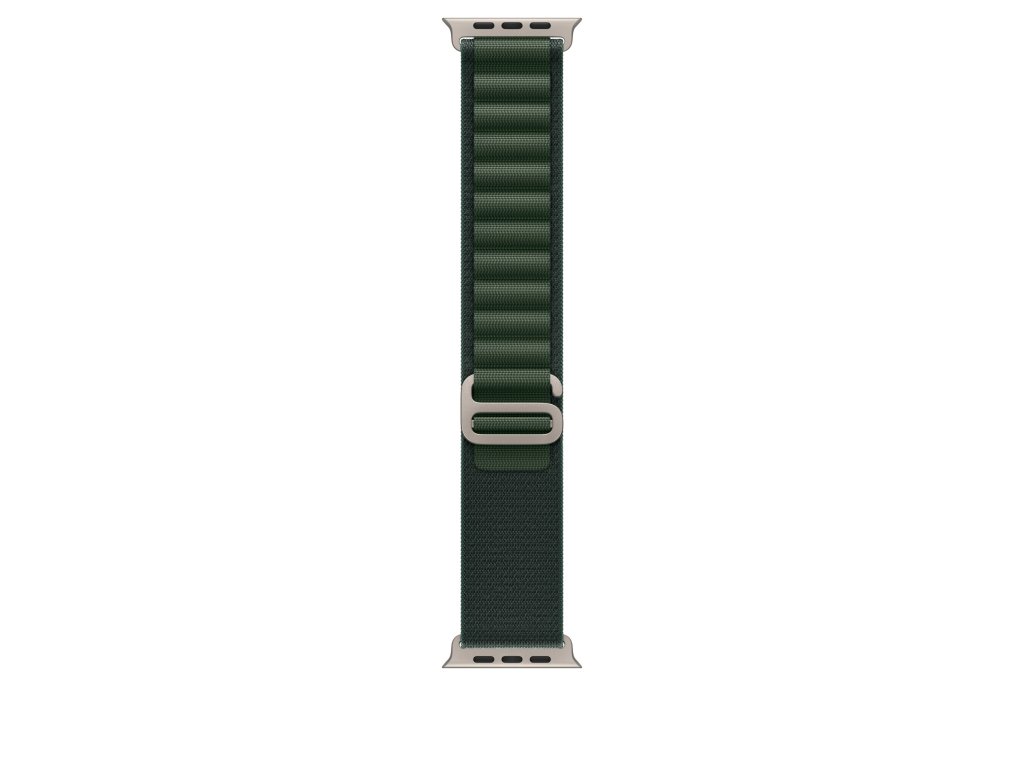 Apple 49mm Alpský tah – velký – provedení z přírodního titanu Houževnatý Alpský tah je vyrobený ze dvou textilních vrstev tkaných jako jeden souvislý celek bez jakýchkoli stehů. Svrchní poutka jsou zpevněná vysokopevnostní přízí a titanová spona ve tvaru písmene G do nich snadno vklouzne a spolehlivě drží. Tenhle řemínek je uhlíkově neutrální. 43 % z váhy Alpského tahu tvoří recyklované materiály, 100 % elektřiny použité při výrobě pochází z čistých zdrojů a 50 % nebo víc ze všech uhlíkově neutrálních produktů Apple nepřepravujeme letadly. V krabici Alpský tah k Apple Watch Technické specifikace Materiál: Titan, 100% recyklovaný polyester, 100% recyklovaný elastan Barva: tmavě zelená (Dark Green Alpine) Barva pouzdra Apple Watch: Přírodní (Natural) Velikost řemínku: 165–210 mm Kompatibilita - Modely Apple Watch * 44 mm * 45 mm * 46 mm * 49 mmDoplňkové parametry