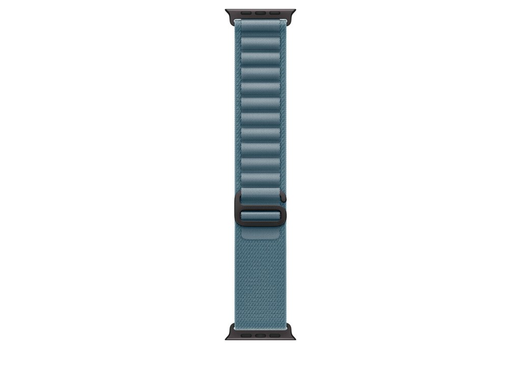 49mm světle modrý Alpský tah – provedení z černého titanu Houževnatý Alpský tah je vyrobený ze dvou textilních vrstev tkaných jako jeden souvislý celek bez jakýchkoli stehů. Svrchní poutka jsou zpevněná vysokopevnostní přízí a titanová spona ve tvaru písmene G do nich snadno vklouzne a spolehlivě drží. *Materiál: 100% recyklovaný polyester, 100% recyklovaný elastan, 90% podíl recyklovaného titanu Kompatibilita Modely Apple Watch *44 mm *45 mm *46 mm *49 mm Velký: Řemínek na zápěstí s obvodem 165–210 mm.Doplňkové parametry