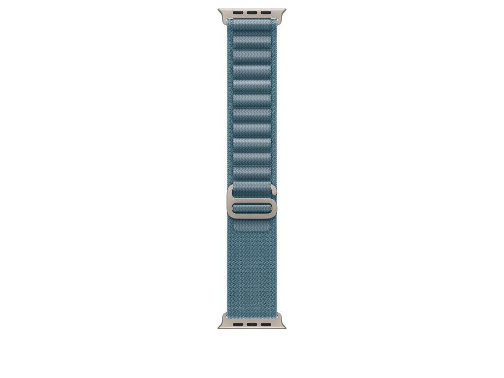 49mm světle modrý Alpský tah – provedení z přírodního titanu Houževnatý Alpský tah je vyrobený ze dvou textilních vrstev tkaných jako jeden souvislý celek bez jakýchkoli stehů. Svrchní poutka jsou zpevněná vysokopevnostní přízí a titanová spona ve tvaru písmene G do nich snadno vklouzne a spolehlivě drží. *Materiál: 100% recyklovaný polyester, 100% recyklovaný elastan, 90% podíl recyklovaného titanu Kompatibilita Modely Apple Watch *44 mm *45 mm *46 mm *49 mm Malý: Na zápěstí s obvodem 130–160 mm. Střední: Řemínek na zápěstí s obvodem 145–190 mm. Velký: Řemínek na zápěstí s obvodem 165–210 mm.Doplňkové parametry